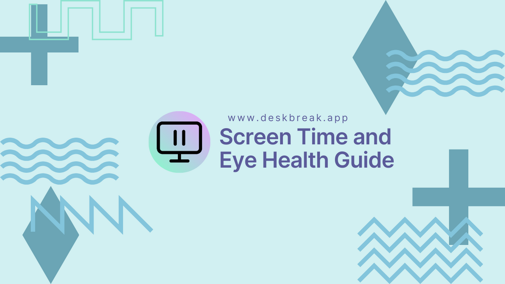 Eye health tips, screen brightness and blue light advice, ergonomic screen setup, 20-20-20 rule guide, eye exercises, break reminders.